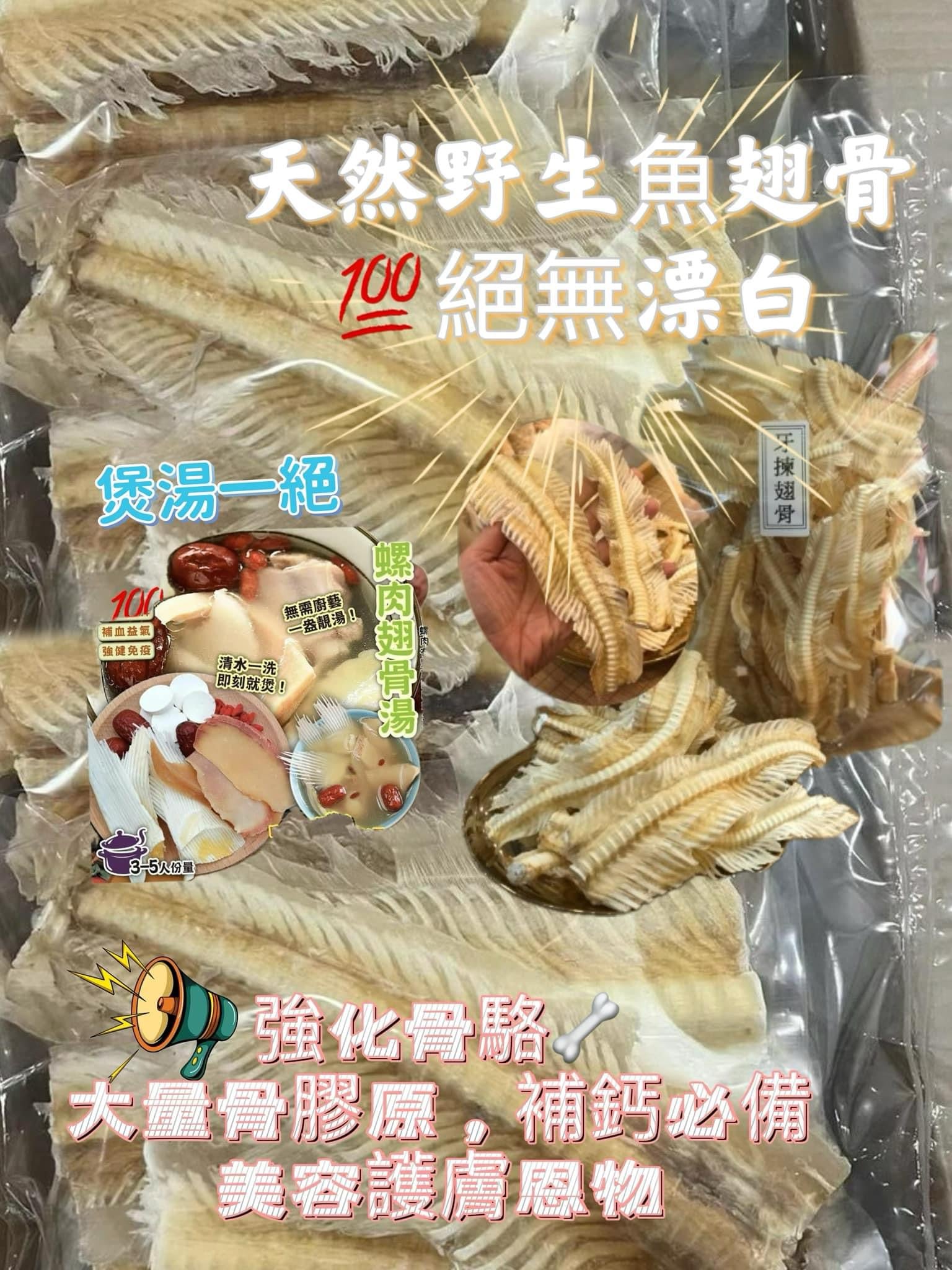 膠質滿滿既《天然野生魚🦈翅骨 》💁🏻♀煲出來既湯變得牛奶🥛色,膠質好,營養豐富,係補關節、美顏佳品😍 含豐富黏多醣體、骨蛋白、軟骨素、鈣質、磷質和碳水化合物等。
