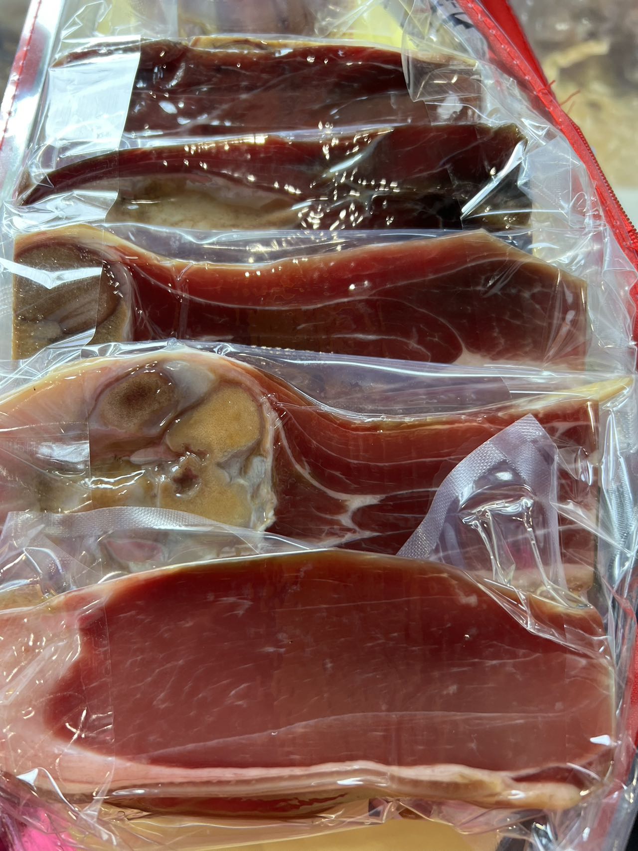 🌟食用火腿,首行要懂得火腿的一般處理常識,如不懂或疏於處理,會嚴重影響火腿的色、香、味,甚至令人厭食。特別是斬下一塊火腿後,必須先將肉麵褐色的發醇保護層仔細地批切掉;皮面先用粗紙揩拭,再用溫水刷洗乾淨。清洗即將食用的整隻火腿,溫水中可泡入少量鹼面,洗後再用清水沖洗。火腿皮如暫不食用,啟暫且可仍留在原腿上,先不切下。