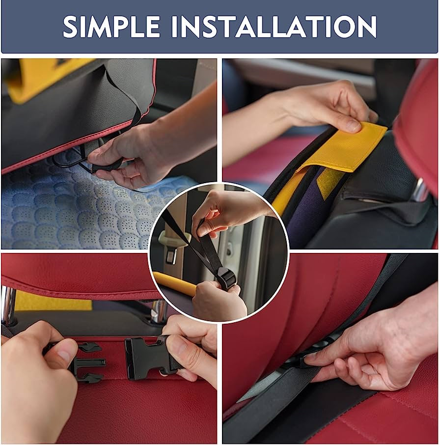 💓安裝方便:汽車整理器後座安裝非常簡單-須將其掛在頭枕上,然後將其卡扣在周圍的底部即可。頂部和底部可調節帶子很好,後座整理器緊固固定在腹部上。