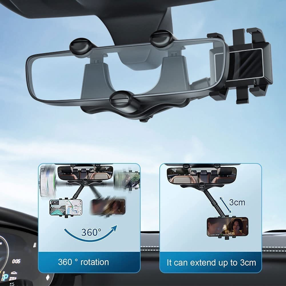 【 360 度可調節汽車後視鏡手機支架 】