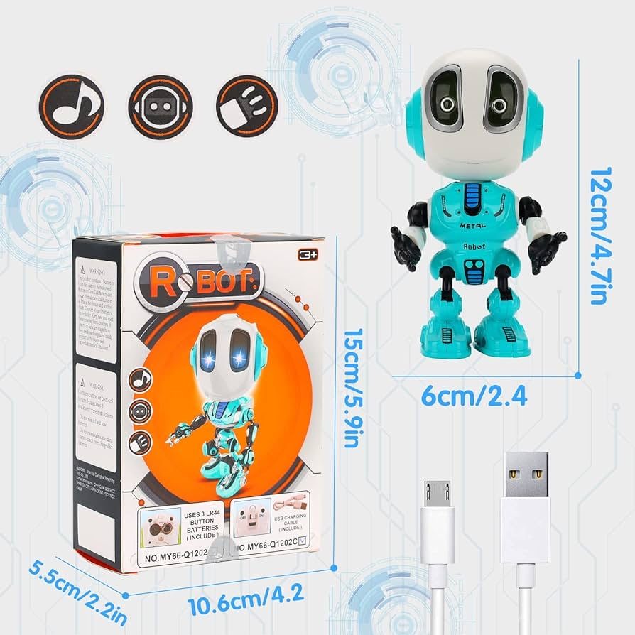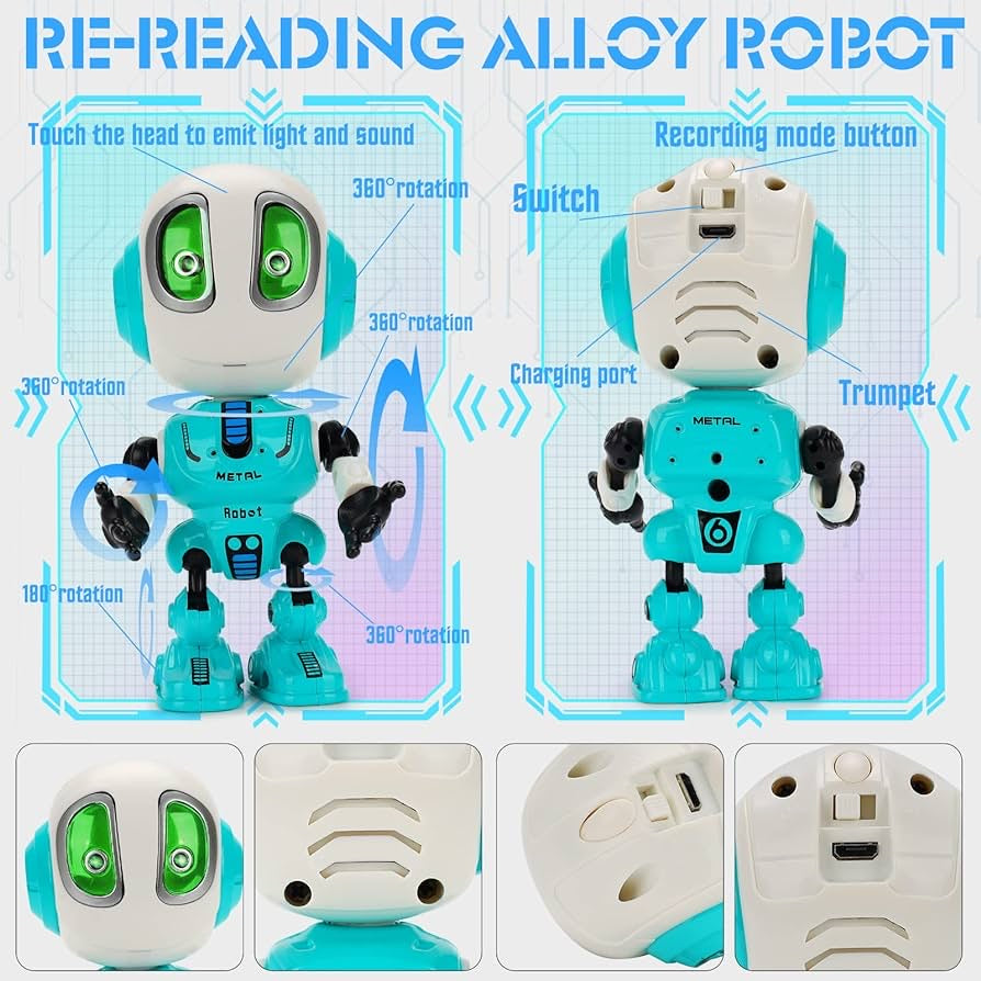 當觸摸機器人頭部時,玩具會發出燈光和聲音效果。機器人的腳、手、頭、手臂均可360度旋轉。