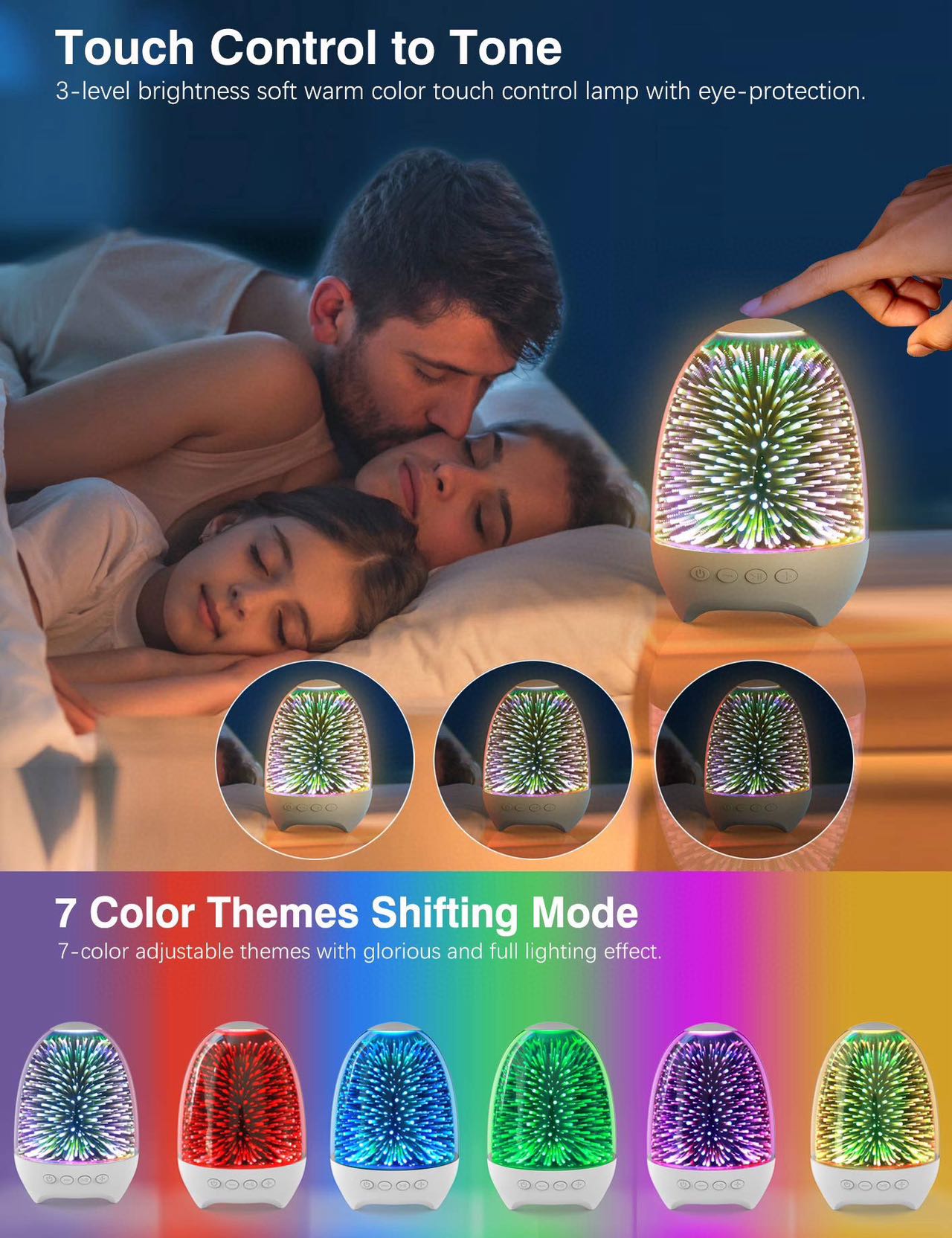 只需👋點擊頂部觸控感應器按鈕即可根據您的需求切換浪漫感、🥂放鬆、睡眠或其他目的的燈光主題。
