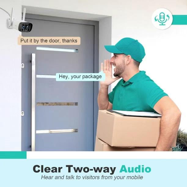 400萬像素超高清➕12倍變焦⚠️ 配備先進的2*200萬像素雙鏡頭和110°寬視角監控您的物業👍 先進📈的數字+光學變焦技術⚠️使圖像即使在1⃣️2⃣️倍變焦的情況下仍然清晰🧐使得監控視頻片段具有更多可見的細節