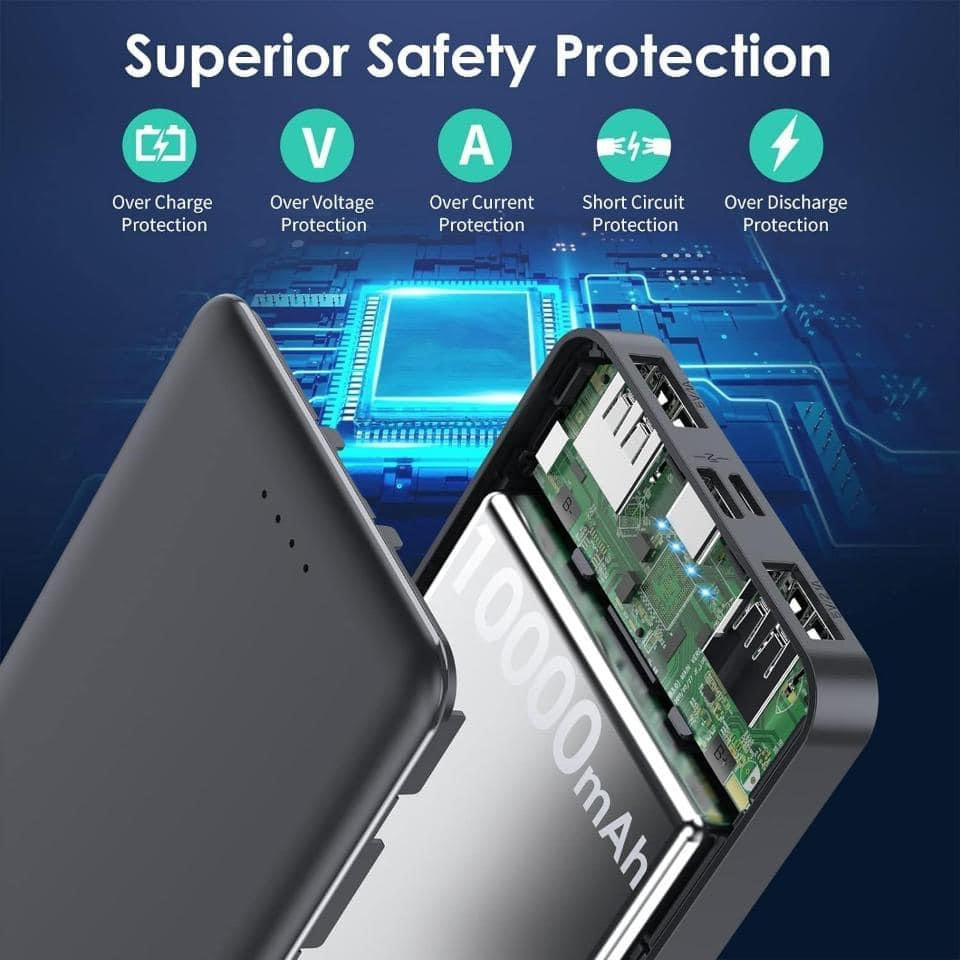 包裝一個高密度鋰離子聚合物電池,最大容量為10000mAh,為您的手機📲和平板電腦充電。