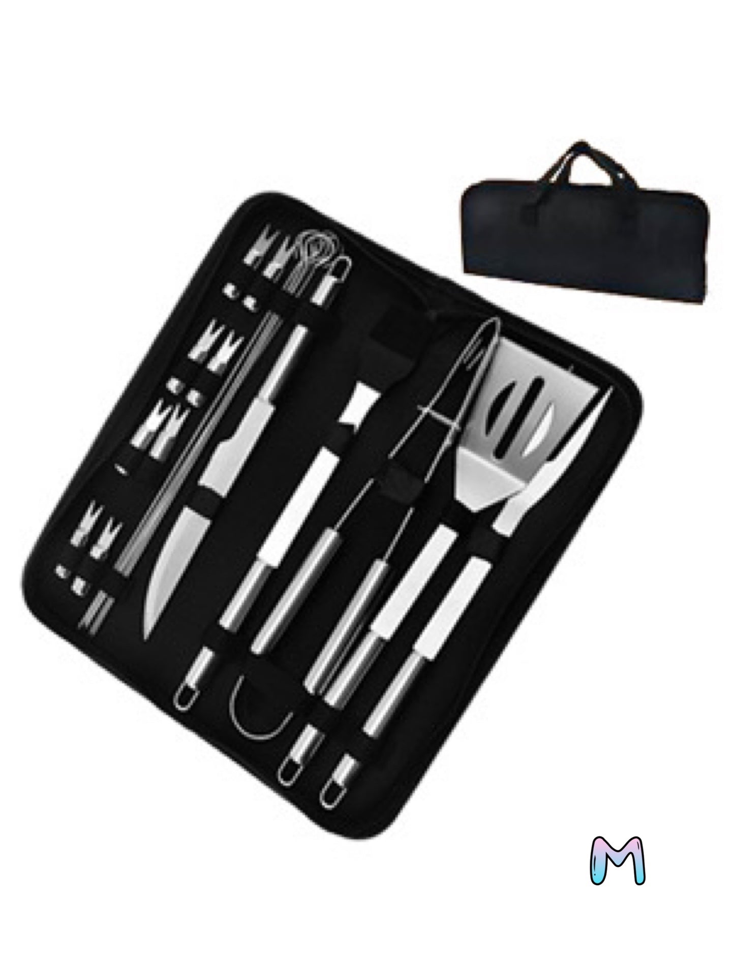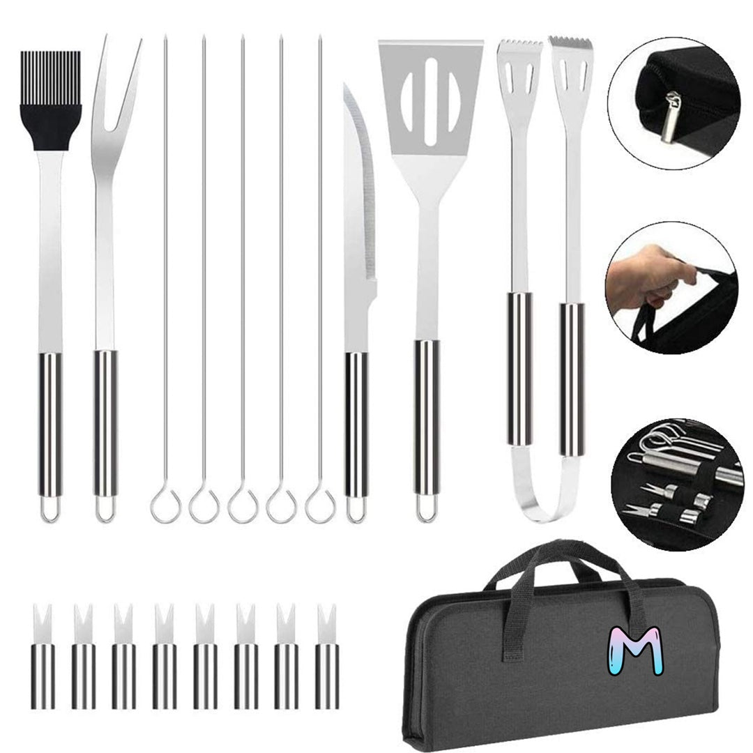 💫方便攜帶,所有不銹鋼燒烤套裝按順序存放在便攜式牛津布盒中,確保每個工具整齊有序。 燒烤工具帶有金屬掛環,方便在不使用時輕鬆存放在烤架或廚房周圍。 您可以輕鬆地將它帶到任何地方,非常適合戶外燒烤、野餐、旅行、週末、露營或燒烤使用。
