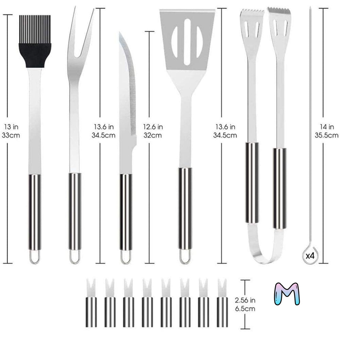 💫選用健康優質金屬,所有燒烤用具均由304不銹鋼製成,因此無毒無害,防銹,經久耐用。 BBQ 燒烤工具比木燒烤工具更好,🔥可谓經得起火的考驗。 所有燒烤架套裝均可用洗碗機清洗,可快速輕鬆地清潔燒烤。