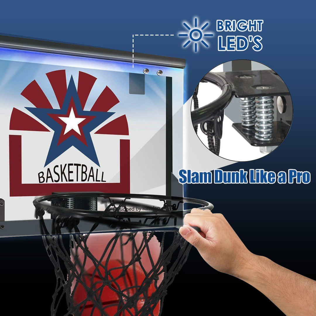 一款適用於室內或事外🏀籃球套裝,帶 2 個球和音頻🎟電子記分牌,🉑️隨時與朋友或家人一起玩耍👫