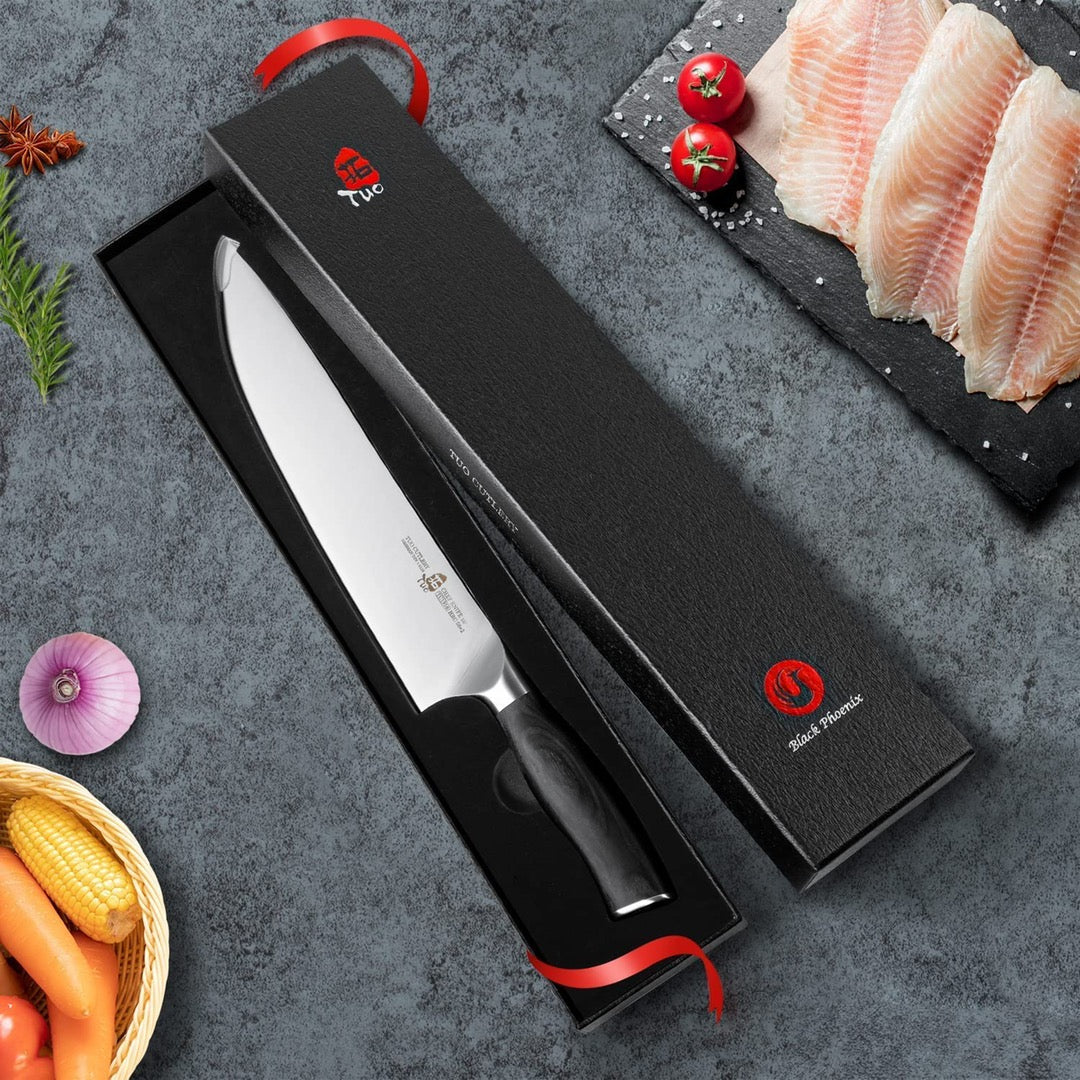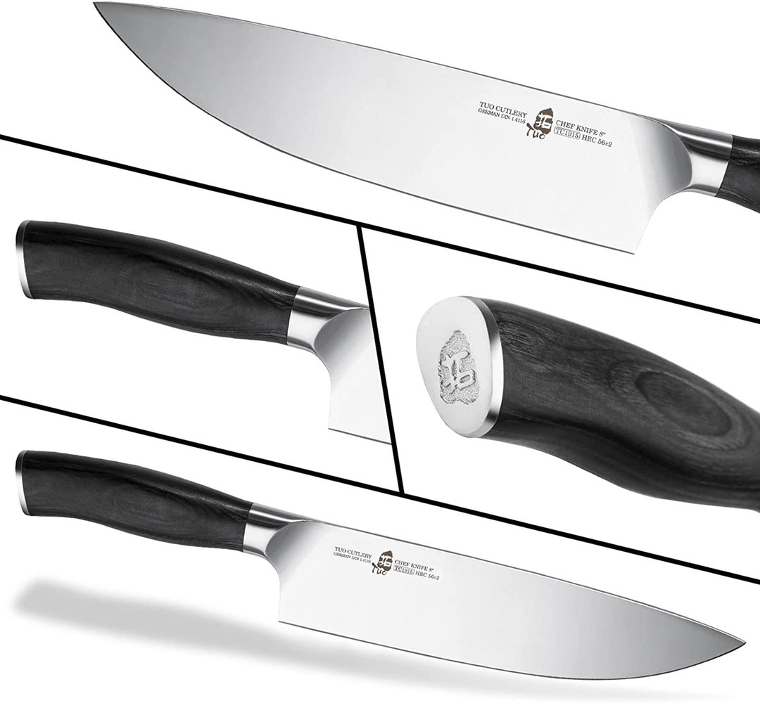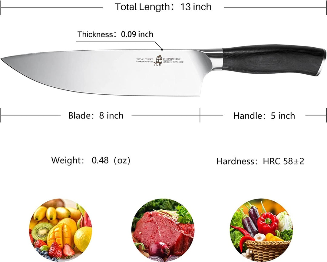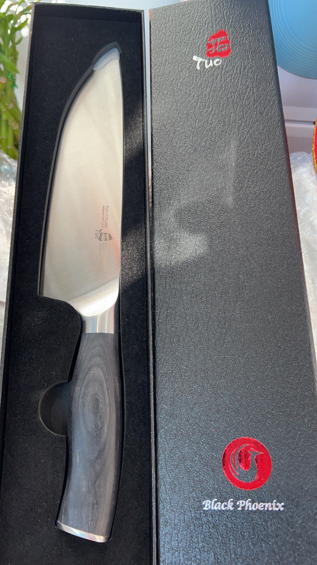 🥇舒適手👋柄,確保切割效率和高舒適性,即使長時間使用。📚採用Pakkawood,一種高密度木材,使用耐用,不易斷裂,不易腐爛。 💠Full Tang鑄柄穩定,尾部印有two標誌,突出質感和口感。