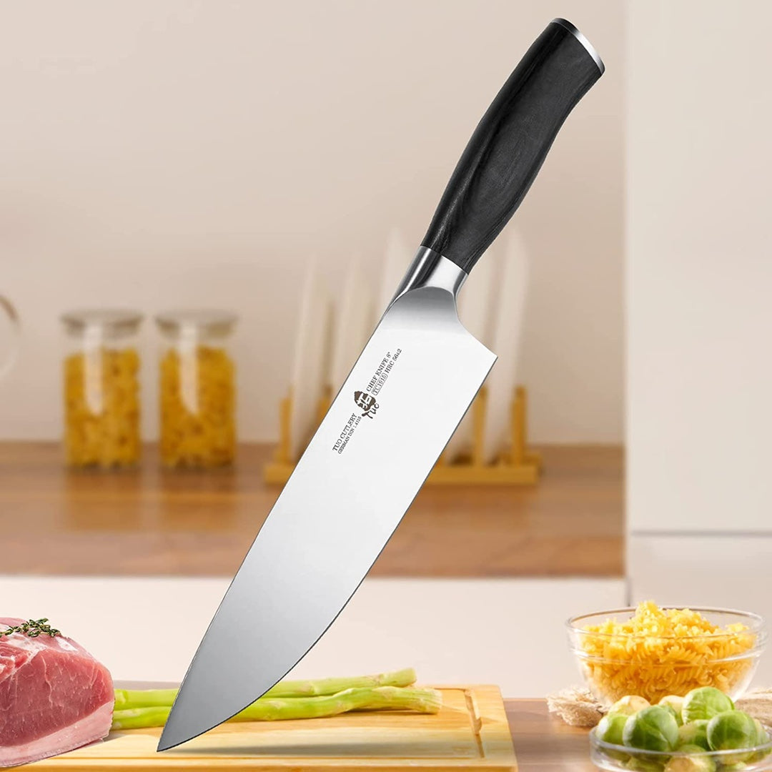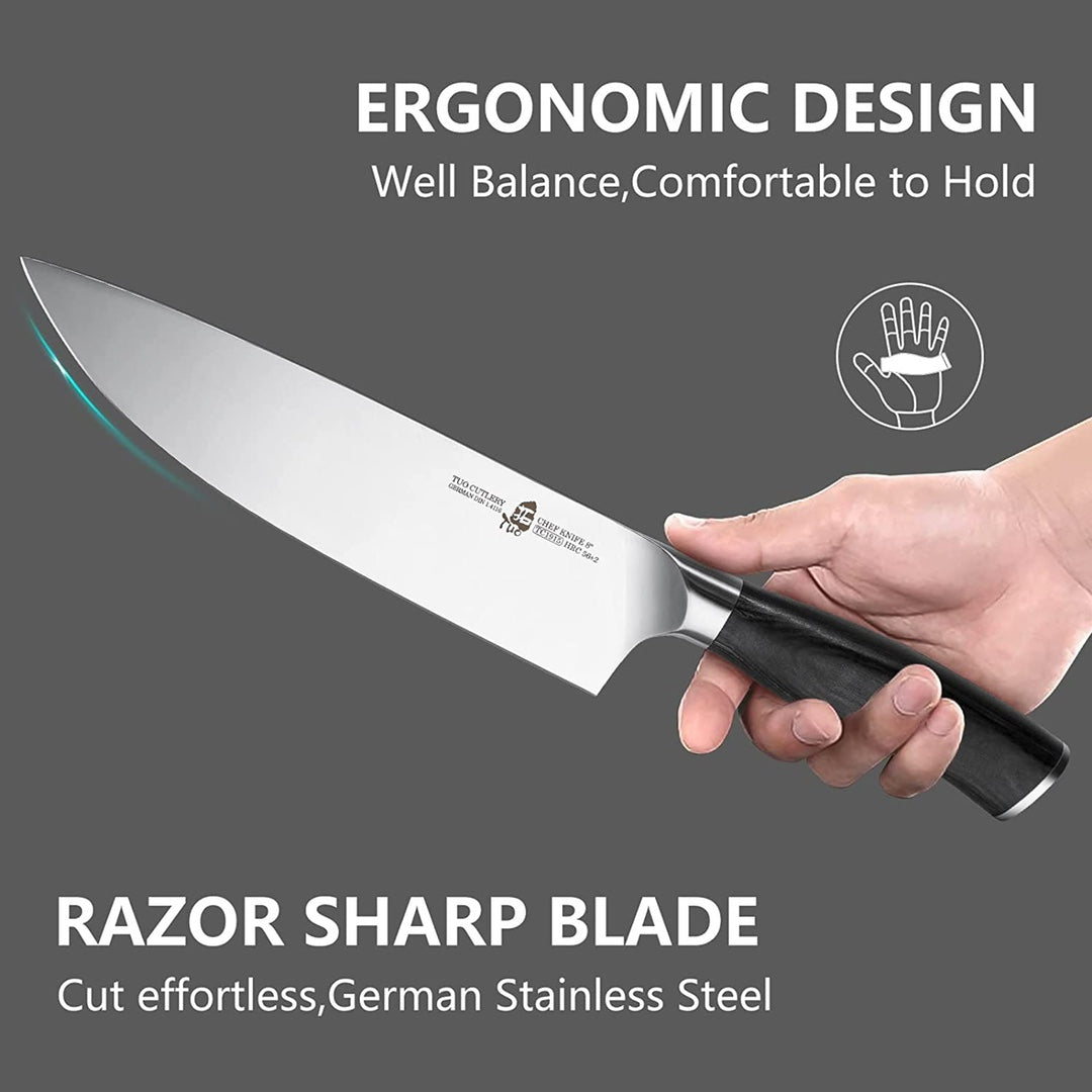 🥇採用高碳德國1.4116不銹鋼製成,硬度和鋒利度🎀比3Cr和5Cr更有優勢,不易生鏽變鈍。資深工匠手工打磨🎗12-15度刃口,達到剃刀般鋒利。切的時候就像熱刀切黃油一樣🌷光滑,你可以像大廚一樣靈活地處理它。